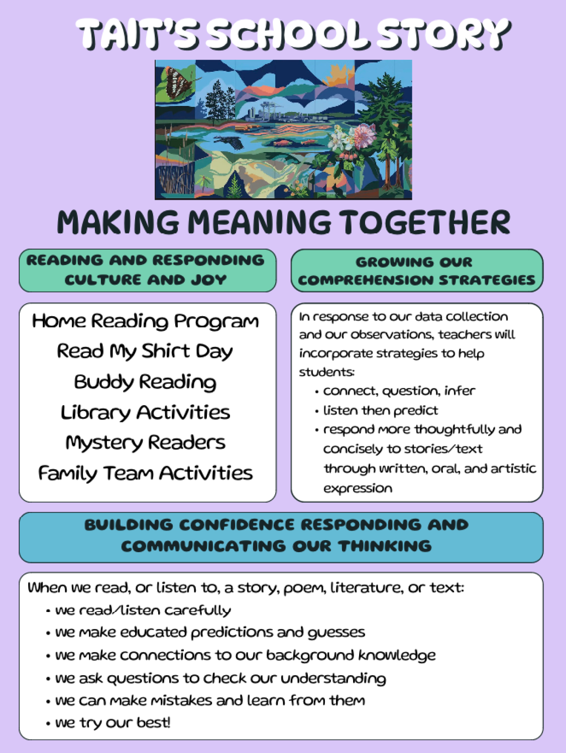 Please see the attached document which summarizes the focus of our School Story this year, Making Meaning Together.